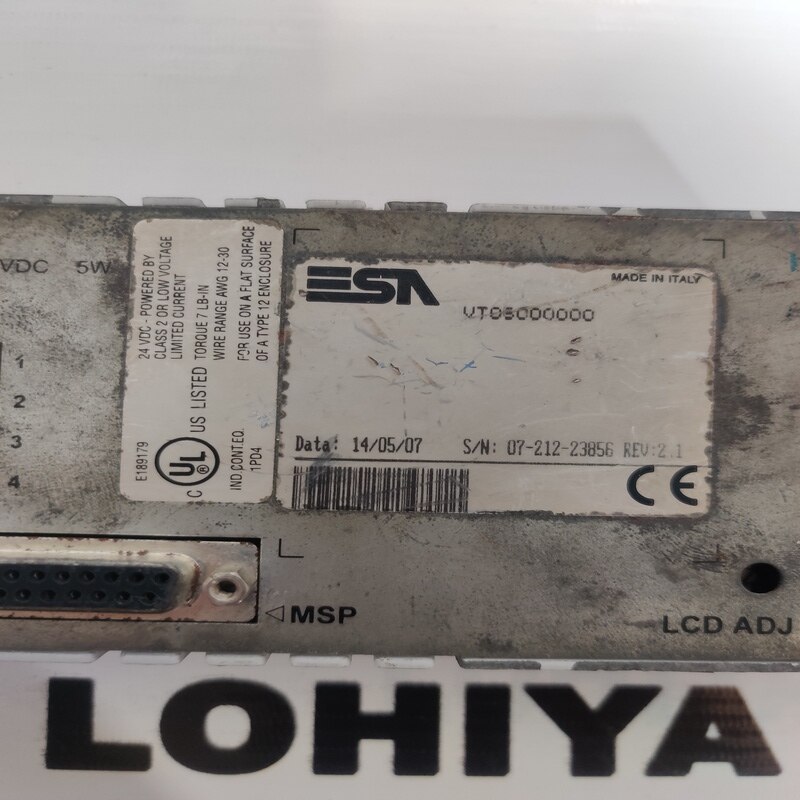 ESA VT05000000 HMI Supplier In Bhavnagar, Gujarat, India. Lohiya Electricals Dealing in all types of Industrial Automation Product and We are dealing in all India. Model NO: VT05000000 Product NO: ESA VT05000000 HMI Brand: ESA Condition: Used and Working. ESA VT05000000 HMI available in Stock. For Further Information: Lohiya Electricals Call: +91 - 9427215462 Mail: lohiyaelectricals@gmail.com