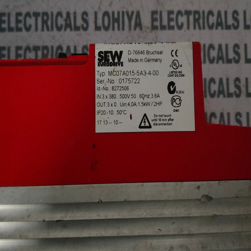 SEW EURO DRIVEMC07A015-5A3-4-00 FREQUENCY INVERTER Supplier In Bhavnagar, Gujarat, India Lohiya Electricals Dealing in all types of Industrial Automation Product and We are dealing in all India. Model No: MC07A015-5A3-4-00 Products Name: SEW EURODRIVE MC07A015-5A3-4-00 FREQUENCY INVERTER Brand: SEW EURODRIVE Condition: Used and Working SEW EURODRIVE MC07A015-5A3-4-00 FREQUENCY INVERTER available in Stock. For Further Information: Lohiya Electricals Call: +91 - 9427215462 Mail: lohiyaelectricals@gmail.com