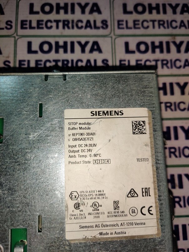 SIEMENS 6EP1961-3BA01 POWER SUPPLY Supplier In Bhavnagar, Gujarat, India Lohiya Electricals Dealing in all types of Industrial Automation Product and We are dealing in all India. Model No: 6EP1961-3BA01 Products Name: SIEMENS 6EP1961-3BA01 POWER SUPPLY Brand: SIEMENS Condition: Used and Working SIEMENS 6EP1961-3BA01 POWER SUPPLY available in Stock. For Further Information: Lohiya Electricals Call: +91 - 9427215462 Mail: lohiyaelectricals@gmail.com