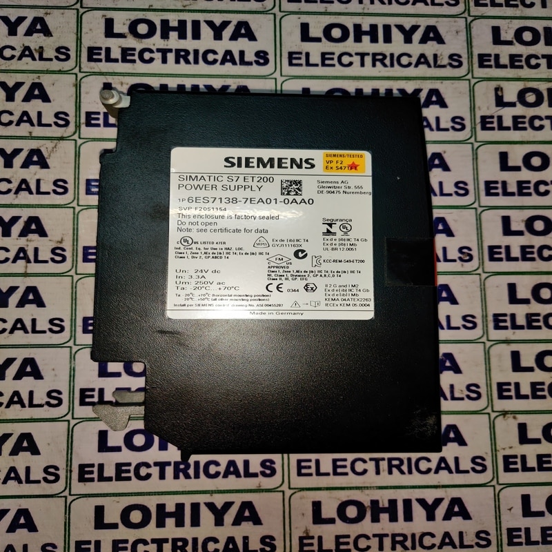 SIEMENS 6ES7138-7EA01-0AA0 POWER SUPPLY Supplier In Bhavnagar, Gujarat, India. Lohiya Electricals Dealing in all types of Industrial Automation Product and We are dealing in all India. Model No: 6ES7138-7EA01-0AA0 Products Name: SIEMENS 6ES7138-7EA01-0AA0 POWER SUPPLY Brand: SIEMENS Condition: Used and Working Siemens 6ES7138-7EA01-0AA0 ET200ISP, Power Supply Module,Siemens 6ES7138-7EA01-0AA0 simatic dp, power supply module 24v for et200isp SIEMENS 6ES7138-7EA01-0AA0 POWER SUPPLY available in Stock. For Further Information: Lohiya Electricals Call: +91 - 9427215462 Mail: lohiyaelectricals@gmail.com