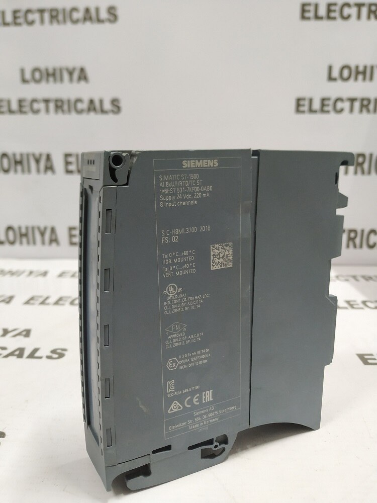SIEMENS DIGITAL INPUT MODULE 6ES7 531-7KF00-0AB0 Supplier In Bhavnagar, Gujarat, India Lohiya Electricals Dealing in all types of Industrial Automation Product and We are dealing in all India. Model No: 6ES7 531-7KF00-0AB0 Products Name: SIEMENS DIGITAL INPUT MODULE 6ES7 531-7KF00-0AB0 Brand: SIEMENS Condition: Used and Working SIMATIC S7-1500, analog input module AI 8xU/I/RTD/TC ST, 16 bit resolution, accuracy 0.3%, 8 channels in groups of 8, 4 channels for RTD measurement, common mode voltage 10 V; Diagnostics, hardware interrupts Incl. infeed element, shield bracket and shield terminal: Front connector (screw terminals or push-in) to be ordered separately SIEMENS DIGITAL INPUT MODULE 6ES7 531-7KF00-0AB0 available in Stock. For Further Information: Lohiya Electricals Call: +91 - 9427215462 Mail: lohiyaelectricals@gmail.com
