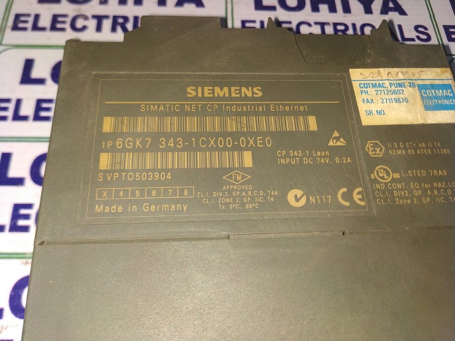 SIEMENS SIMATIC S7 6GK7 343-1CX00-0XE0 COMMUNICATION MODULE Supplier In Bhavnagar, Gujarat, India Lohiya Electricals Dealing in all types of Industrial Automation Product and We are dealing in all India. Model No: 6GK7 343-1CX00-0XE0 Products Name: SIEMENS SIMATIS 6GK7 343-1CX00-0XE0 COMMUNICATION MODULE Brand: SIEMENS Condition: Used and Working SIEMENS SIMATIS 6GK7 343-1CX00-0XE0 COMMUNICATION MODULE available in Stock. For Further Information: Lohiya Electricals Call: +91 - 9427215462 Mail: lohiyaelectricals@gmail.com